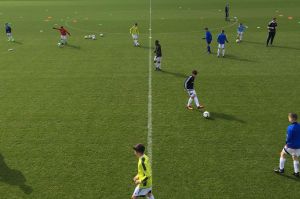 芝本:技術面も、エバートンはかなり取り組んでいる印象は受けますね。チームの練習、たとえば小さなポゼッションでの4対4対3とかでも、技術面でIDPによる短所の克服が必要な選手であれば、3人でのコーチング体制で行っています。ほとんどは2人体制ですが、1人がセッションをリードして指導し、もう1人のサブコーチがIDPに注目してチャレンジなどルールの追加をしており、チームの練習でも技術のIDPが失われないように工夫しています。3人目のコーチがいる場合は、火曜日と木曜日にポジション、ユニット別に分けて技術面のトレーニングもします。練習後に負荷をもう少しかけられる選手がいれば、たとえばフィニッシングやパスの精度、技術面を追加で実施するシーンをかなり見受けます。